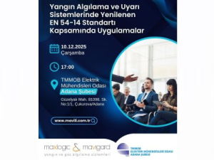 10 Aralık 2025 Çarşamba günü saat 17:00 da Şubemizde Mavili Elektronik A.Ş. firması ile `Yangın Algılama ve Uyarı Sistemlerinde Yenilenen EN 54-14 Standardı Kapsamında Uygulamalar` konulu seminer düzenlenecektir. Seminere katılım ücretsiz olup, tüm üyelerimiz davetlidir. Etkinlik afişine yazımız ekinden ulaşabilirsiniz.